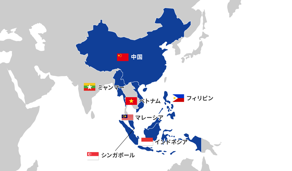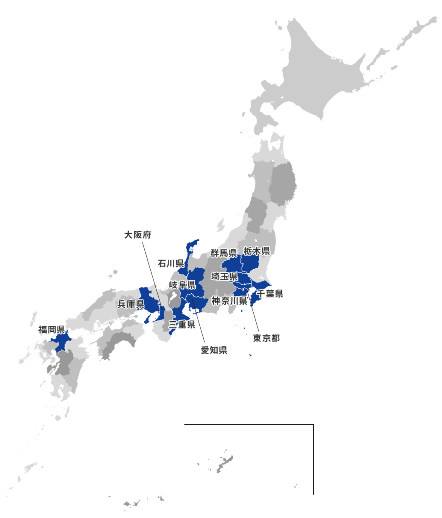 現在、下記国内・国外含め、下記エリアの企業・団体様よりお取引をいただいております。